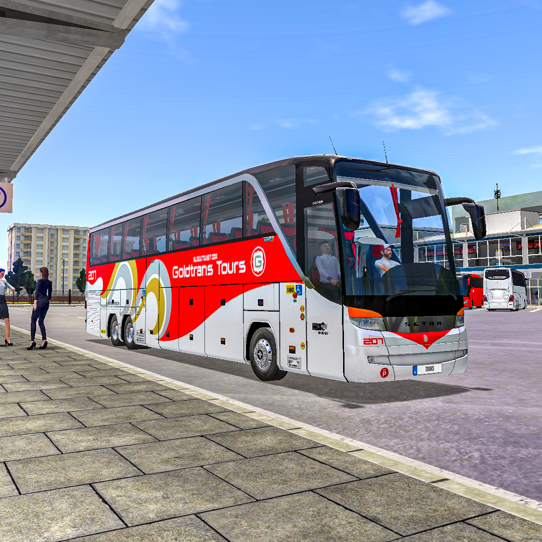 Experience luxury with the free Goldtrans Tours livery. Enhance your Bus Simulator: Ultimate gameplay with this sleek, professional bus design.