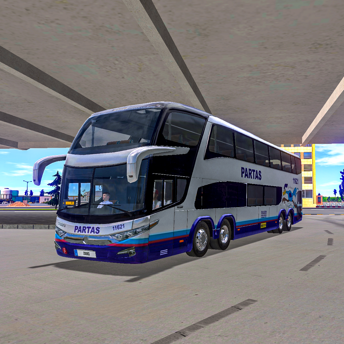 Upgrade your gameplay with this exclusive Partas double-decker livery, boasting sharp graphics and the iconic, sleek blue-and-white color scheme.