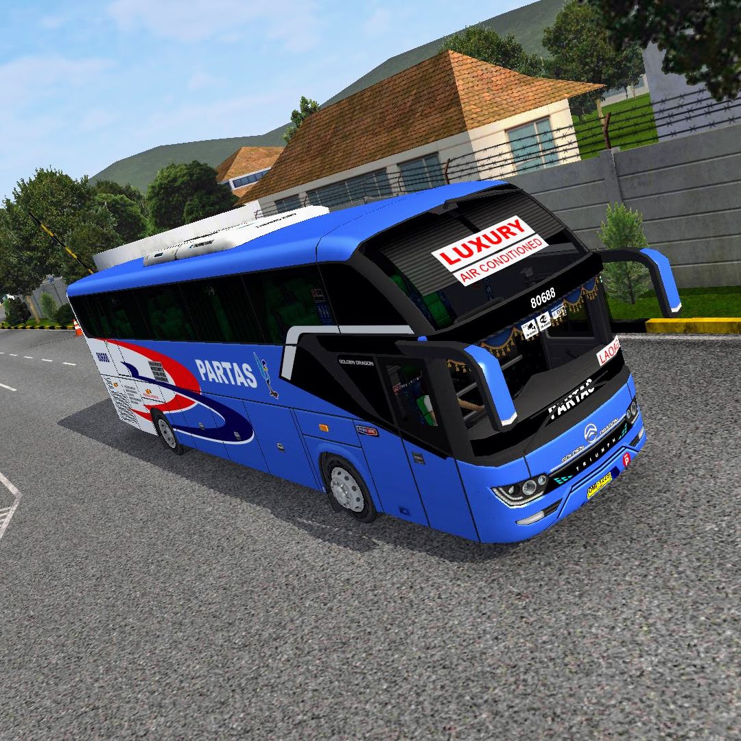 Premium PARTAS blue luxury skin featuring crisp graphics, elegant detailing, and realistic textures, delivering a high-end, immersive BUSSID driving experience.