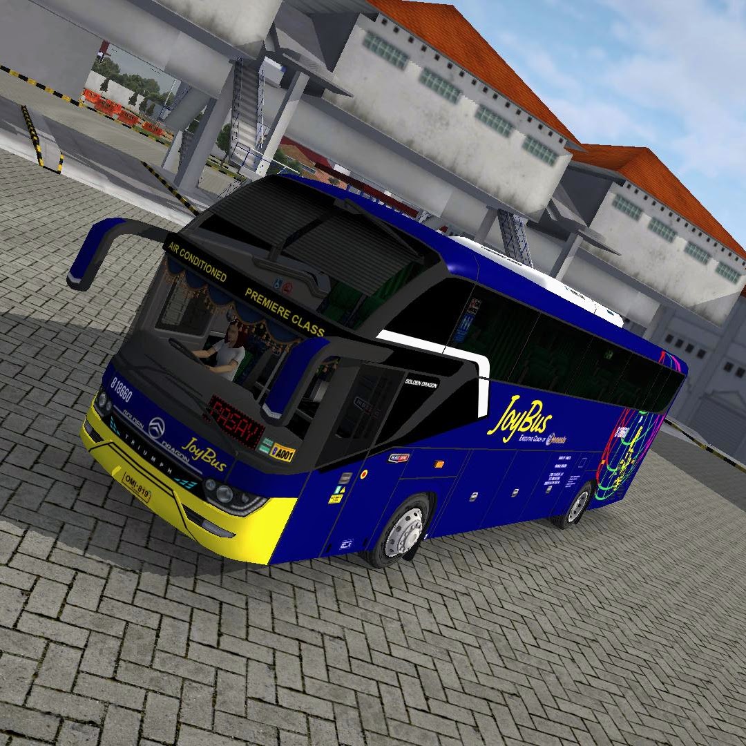 A bold blue-and-yellow premium bus skin with vibrant graphics, sleek detailing, and a polished JoyBus-inspired design for Bus Simulator Indonesia.