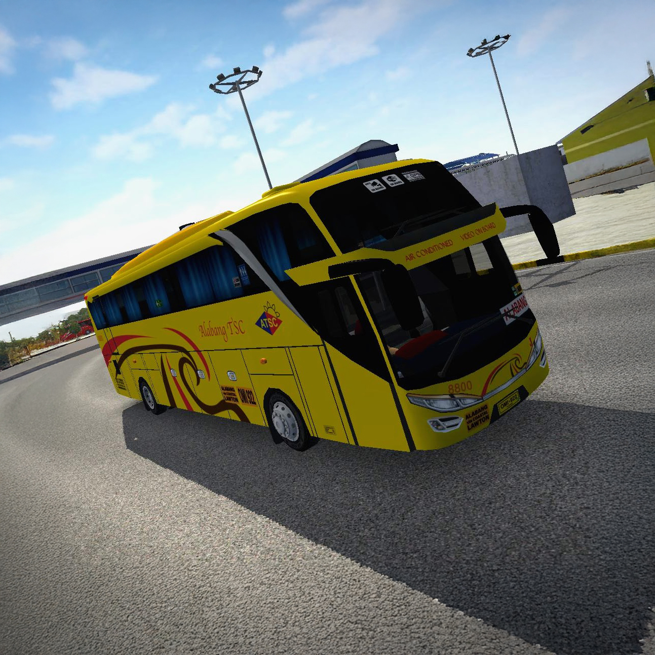 Brighten the road! Get the premium yellow Alabang TSC skin with red and black accents for your bus in Bus Simulator Indonesia.