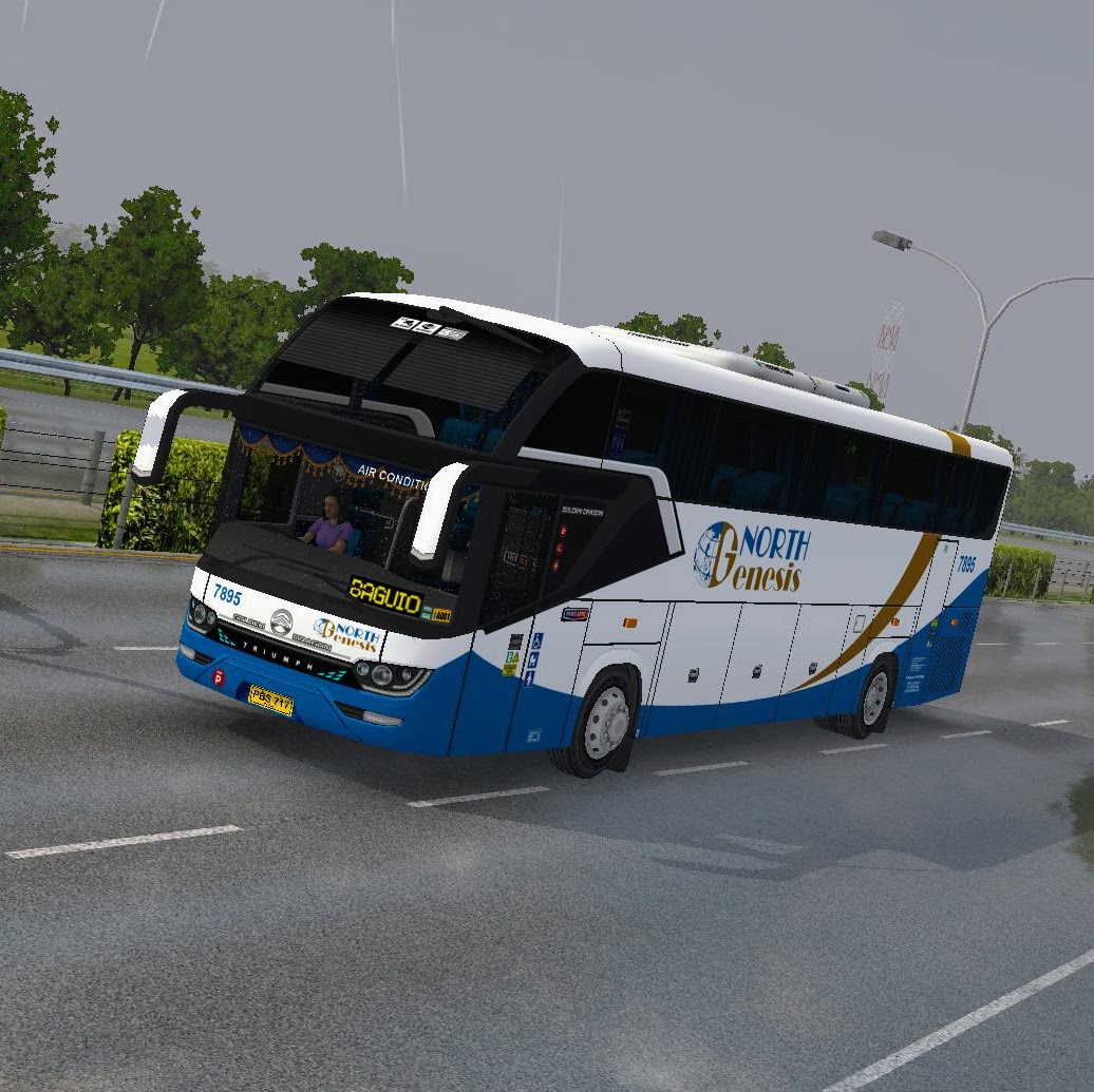 Drive the North Genesis premium skin! This sleek white and blue livery with gold accents offers authentic, modern style for Bus Simulator Indonesia.